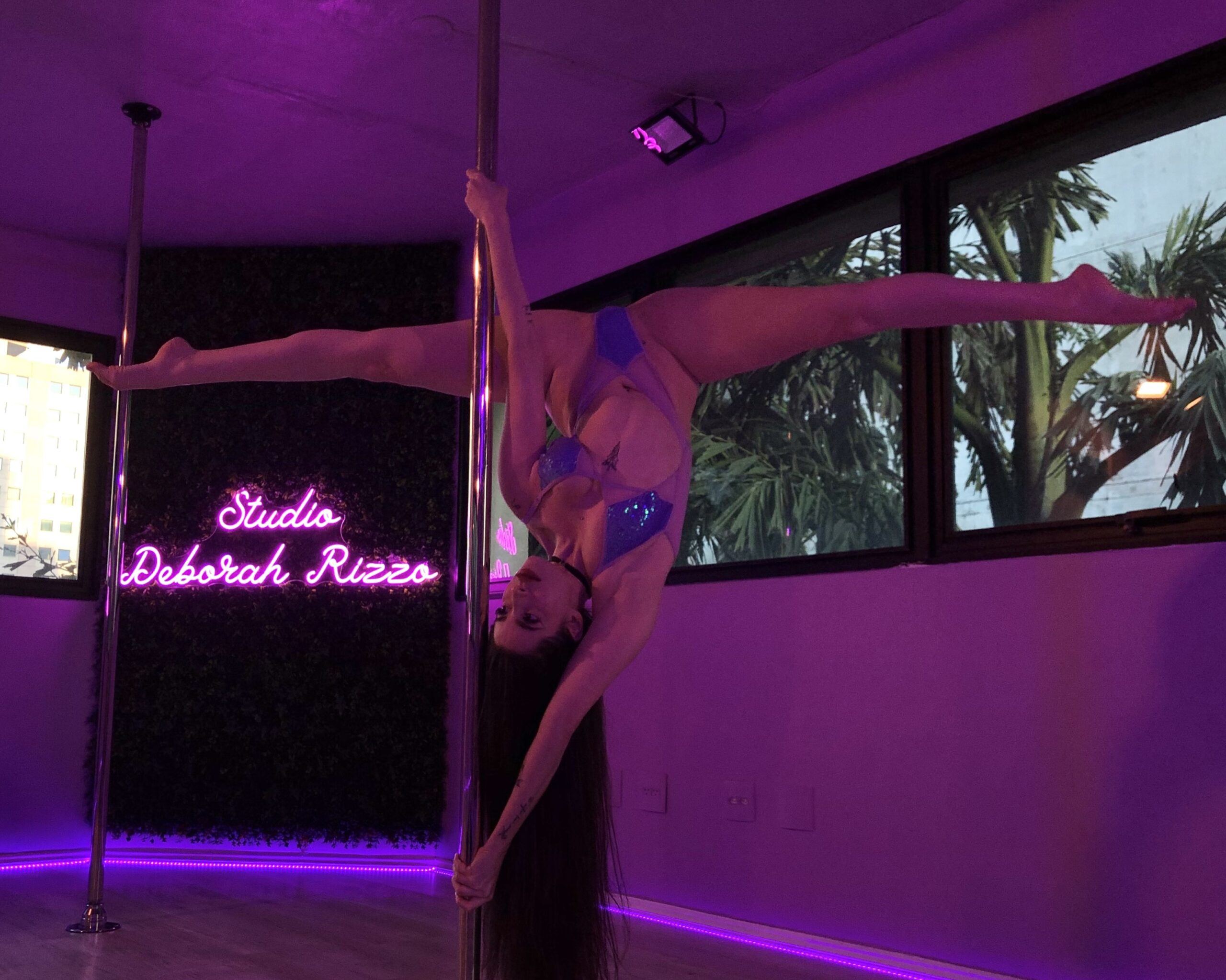 O Pole Acrobático é uma aula técnica, com foco no aprendizado das bases, travas, acrobacias e movimentos que vão do iniciante ao avançado.